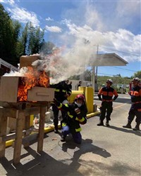 令和7年9月21日南消防署で行われた火災性状訓練に新人の団員を含む8名で参加しました。火災性状訓練では、建物に見立てた木箱に実際に火を着けて炎の広がり方等について見ることができ大変役に立つ訓練でした。