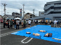 人形を使って、心肺蘇生法の仕方やAEDの使い方を体験していただきました。