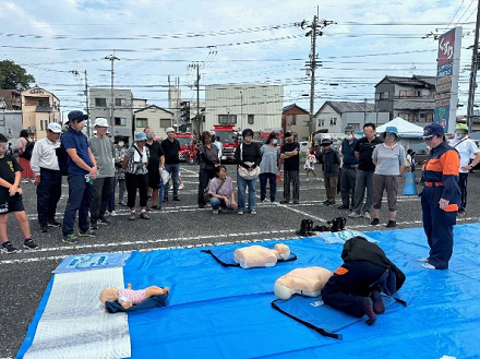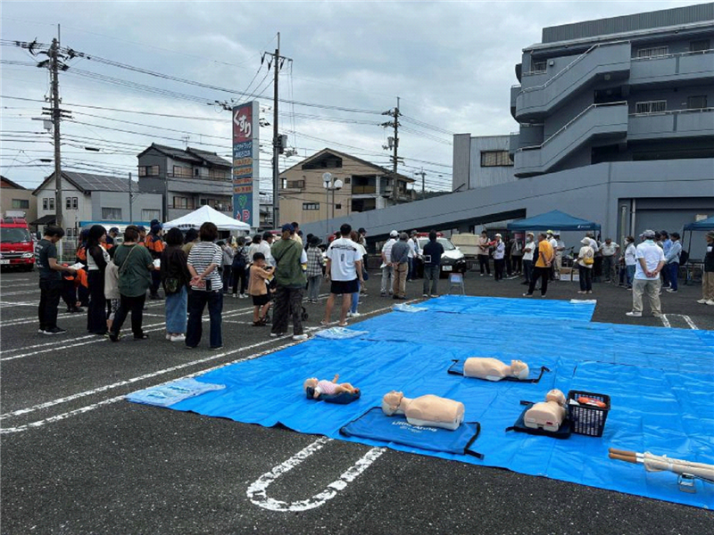 人形を使って、心肺蘇生法の仕方やAEDの使い方を体験していただきました。
