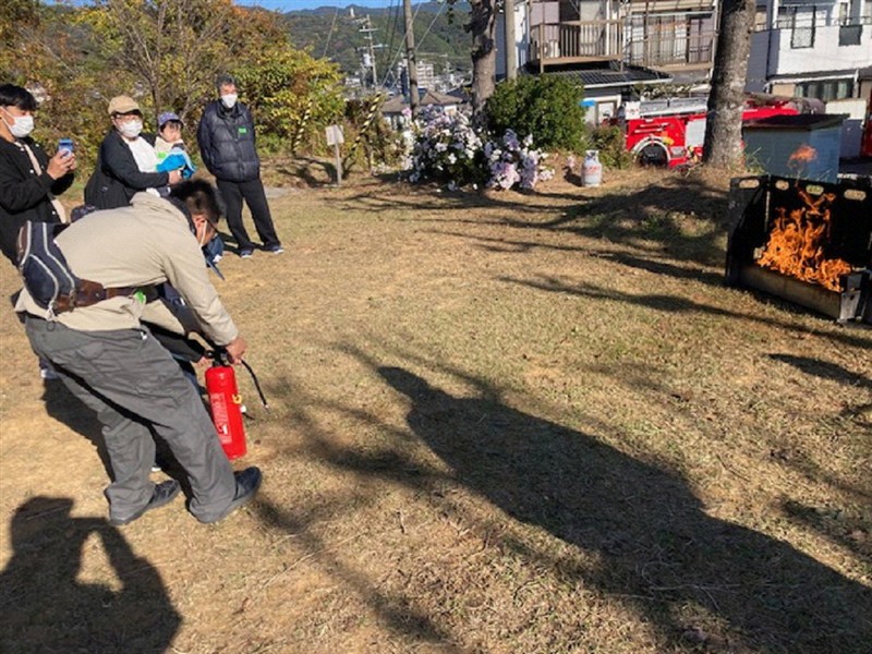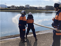 旭分団は,12月13日(日)に東城山町アルファスティツにて水消火器の取扱い訓練を実施しました。