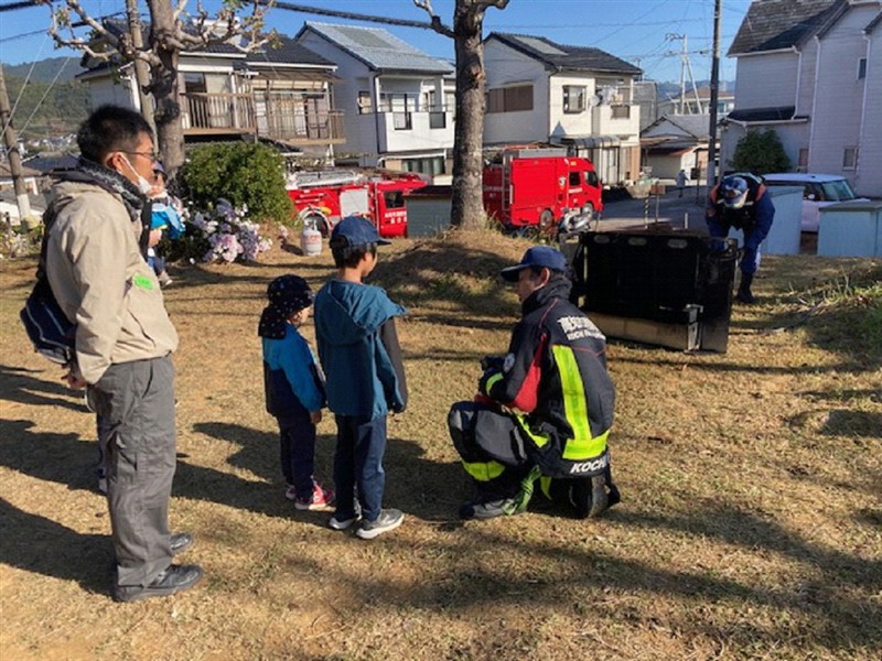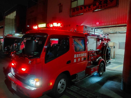 旭分団は,3月6日中消防署旭出張所の署員の皆さんとレイユこうちさんにて,避難・通報・消火訓練を行ないました。