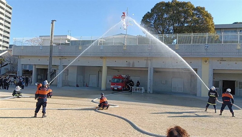 令和7年3月19日 北消防署にて令和6年度に入団した新人団員に対して放水訓練を実施しました。