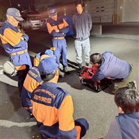 潮江分団は,12月6日に潮江東ノ丸公園にて土居町町内会防災部と南海トラフ地震に向けて消火訓練やチェーンソーの取扱い訓練指導を行いました。