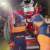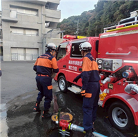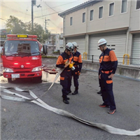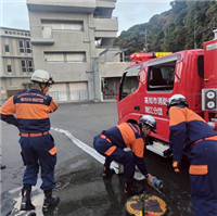 潮江分団は,平成28年1月26日(火)の文化財防火デーの日に,初期消化体制の確立するために南消防署と潮江天満宮自衛消防隊とともに潮江天満宮にて消火(放水)訓練を実施しました。