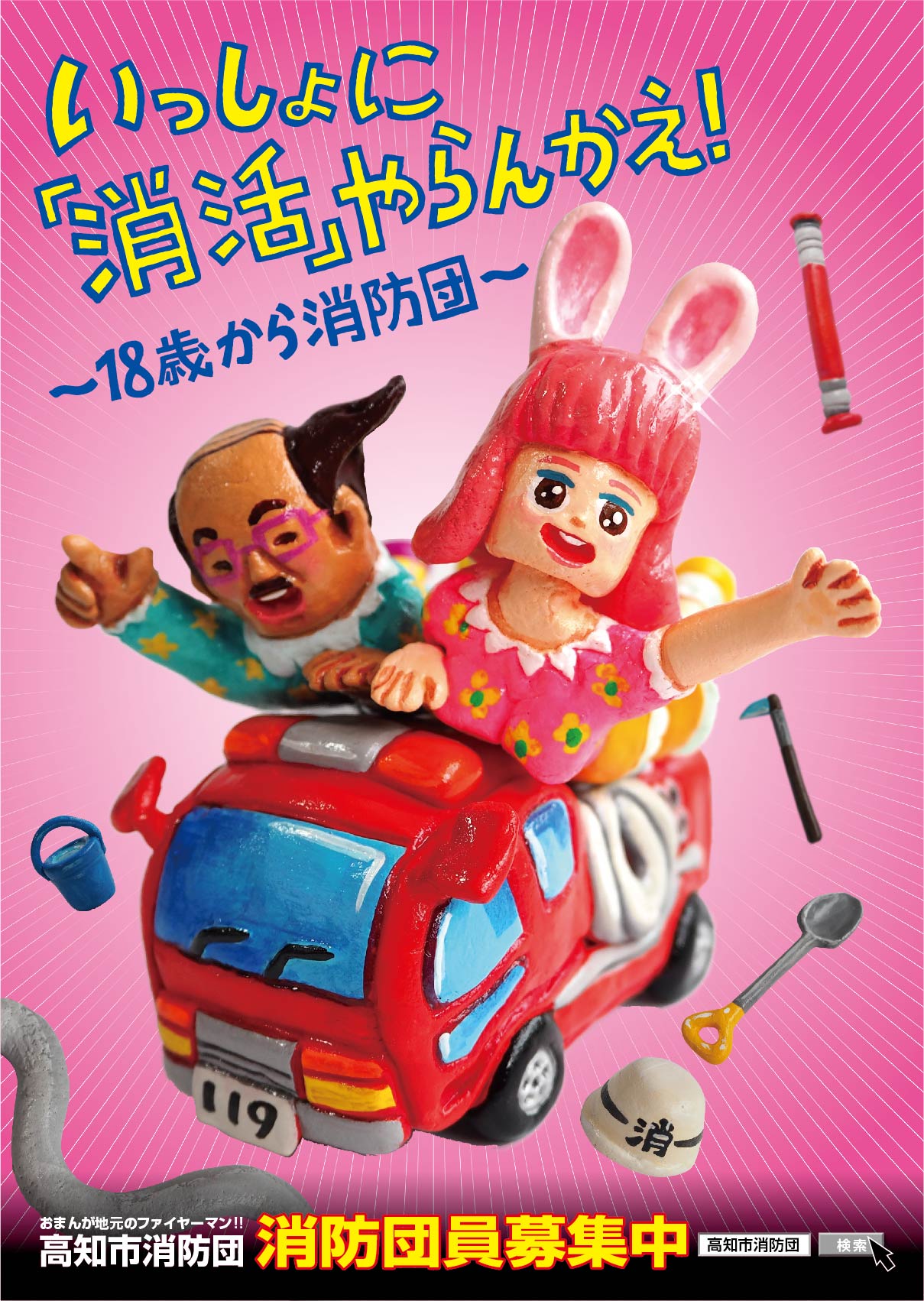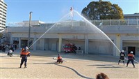 東消防署の職員の方が煙体験ハウスや常備消防車両の展示や説明を私たち大津分団員が水消火器と 分団消防車両の展示や説明を行いました。